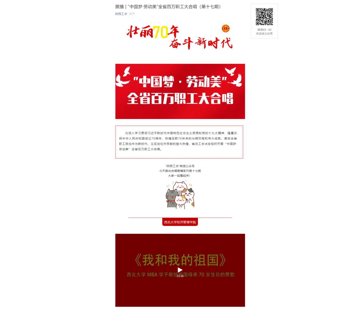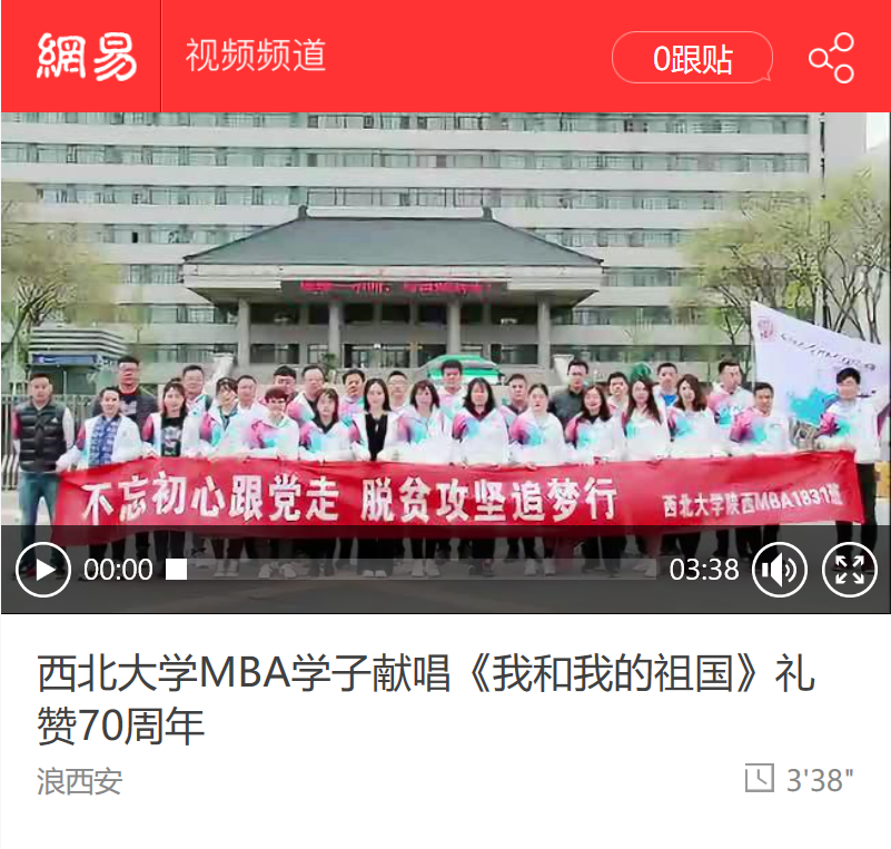 金秋气爽,丹桂飘香。2019年9月21日冰球官网MBA学员唱响《我和我的祖国》,致敬我们伟大的祖国,献礼祖国70华诞。视频在陕西省总工会举办的“中国梦﹒劳动美”百万职工大合唱活动中展播,并在优酷、网易、今日头条等多家媒体网站收录。