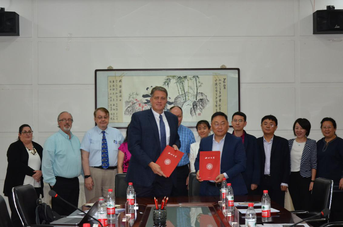 9月24日上午,美国中密歇根大学商务管理学院院长Mobery教授一行来访冰球官网,冰球官网党委书记杜勇,副院长马莉莉、李辉、赵传仁,副教授付媛、康蓉参加座谈。