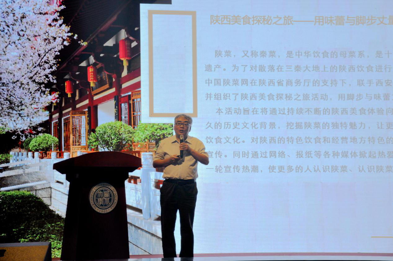 88级经管院优秀院友、西安大唐博相府文化艺术酒店总经理、中国陕菜网CEO刘晓钟先生还为MBA/EMBA新生做了题为"陕菜体系建设和品牌发展"的主题分享,刘总分别从陕菜体系内部建设、外部建设及未来品牌建设向新生们作了系统阐述,表达了自己对陕菜未来发展之路的期望。