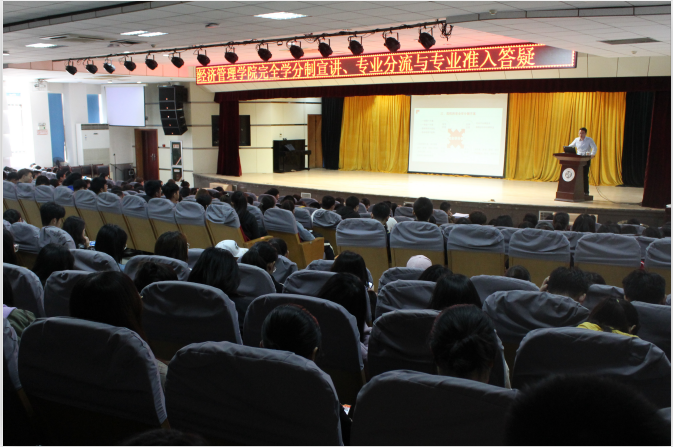 近日,冰球官网针对2018级新生召开冰球突破豪华版官方网站完全学分制宣讲、专业分流与专业准入答疑会。冰球官网主管学生工作的赵金哲副书记、主管本科教学工作的李辉副院长、2018级辅导员、2018级400余名新生参加了宣讲会。宣讲会由赵金哲副书记主持。