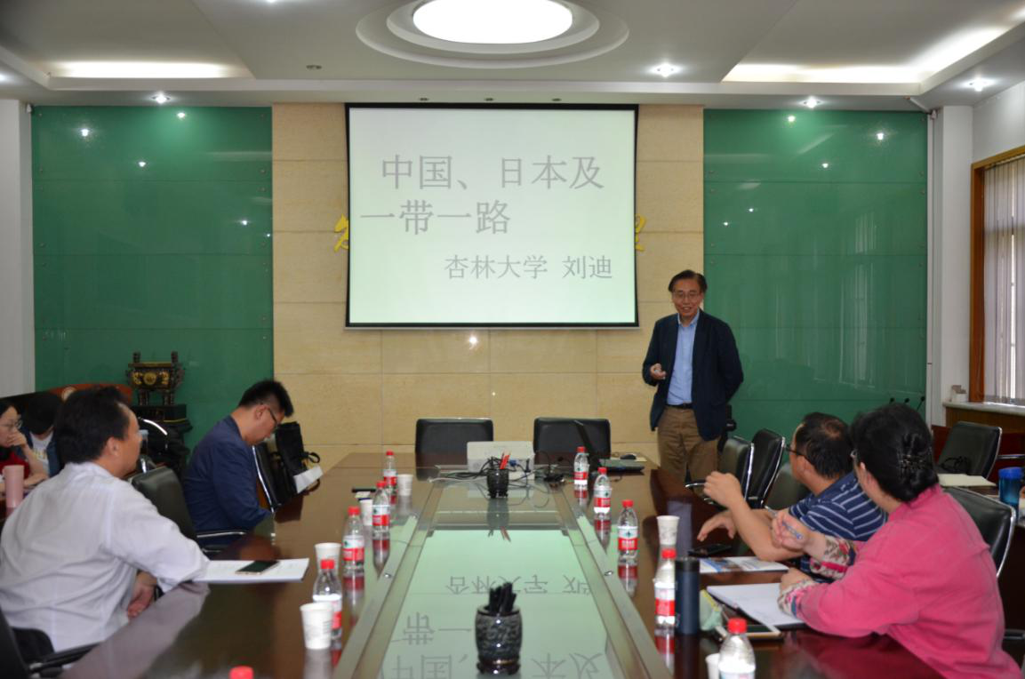5月30日下午,受冰球突破豪华版官方网站国际合作部邀请,日本杏林大学刘迪教授莅临冰球官网做了题为“中国、日本及一带一路”的讲座。本次讲座由康蓉副教授主持,学院师生代表40余人参加了本次讲座。