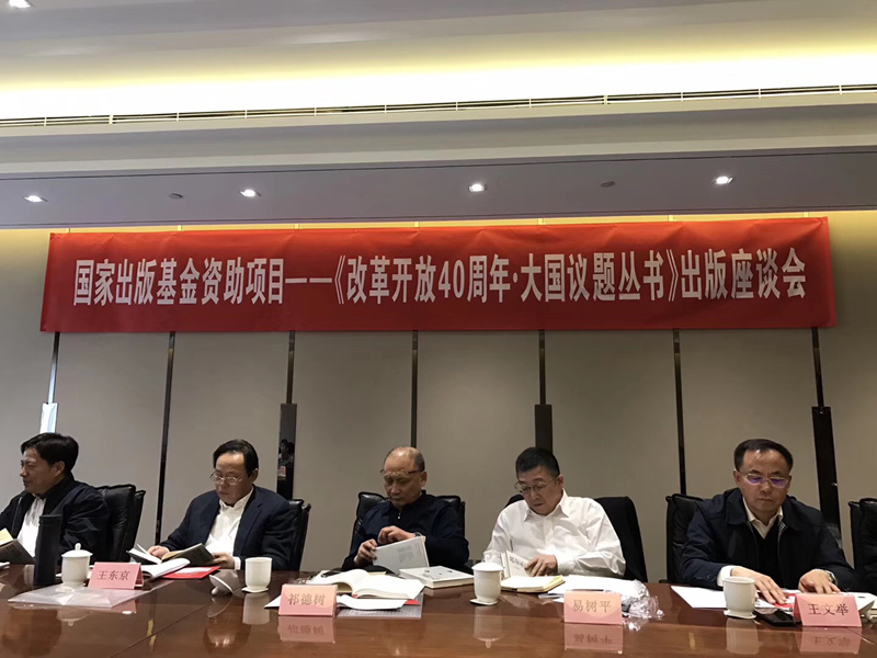 在庆祝改革开放40周年、喜迎新中国成立70周年之际,由重庆大学出版社和重庆智库联合策划出版的“改革开放40周年·大国议题丛书”出版座谈会近日在京举行。中央党校(国家行政学院)副校(院)长王东京教授、国家出版基金规划管理办公室副主任祁德树,以及丛书作者代表、审稿专家代表、特邀专家等40余人出席座谈会。冰球官网白永秀教授作为丛书作者代表参加会议,学院党委书记杜勇、院长吴振磊教授受邀出席。