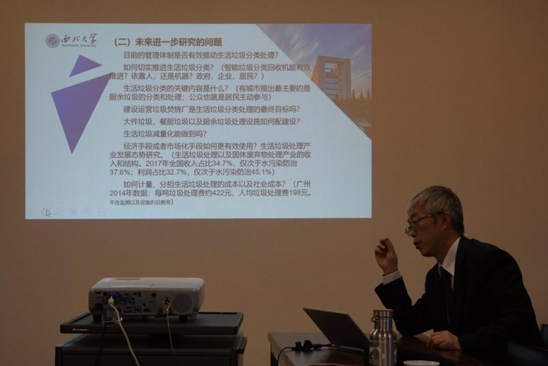 徐波教授的报告梳理了西安市城市生活垃圾管理的政策体系,分析了政策结构和特点,将西安市的城市垃圾管理政策体系与上海、重庆、厦门的政策做出系统比较;从能力和设施、模式与效果等方面介绍了西安市城市生活垃圾处理的现状,着重讨论西安市生活垃圾分类管理城市、农村的两个案例,并就垃圾焚烧项目的综合效应评价、生活垃圾处理如何落实循环经济理念、无废城市建设的关键路径等问题做了展望。