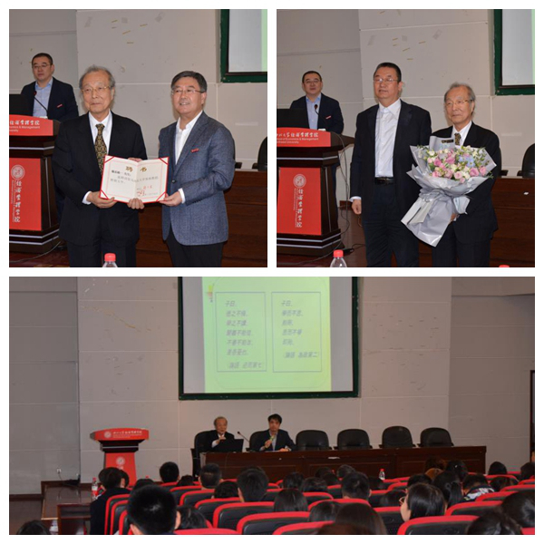 冰球突破豪华版官方网站校长郭立宏亲临会场致辞。常江副校长主持了篠原総一兼职教授聘任仪式。学术报告会由冰球突破豪华版官方网站院长吴振磊主持,经管学院二百余名师生聆听了学术报告。