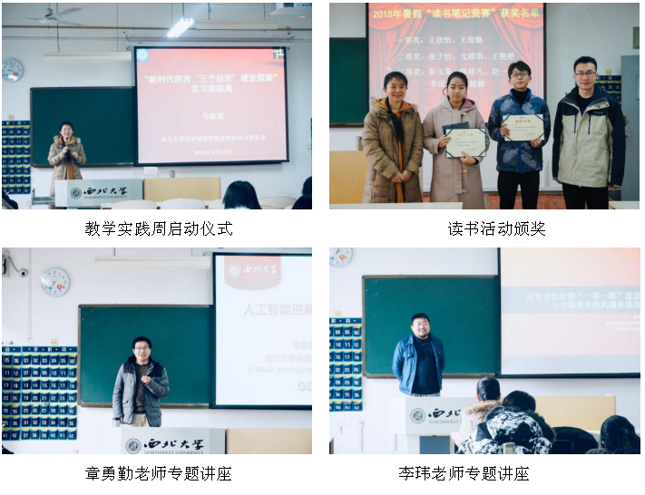 1月15日,首先由马莉莉老师介绍本次实践活动基本构想;而后王颂吉老师主持国贸系读书活动颁奖仪式,并布置寒假读书工作。随后第一场专题讲座是由冰球突破豪华版官方网站信息科学与技术学院的章勇勤老师主讲“人工智能进展及其应用背景”,内容包括当前人工智能的发展现状、应用领域及未来的发展趋势。下午第二场专题讲座由冰球突破豪华版官方网站中东研究所李玮老师主讲“泛安全化时期的国际关系和中国新青年面临的机遇和挑战”,内容包括“世界与梦想”、“2018年来‘一带一路’建设的重点和难点”,以及新时代下的新青年所面临的机遇和挑战。通过李老师生动有趣的讲解,同学们对当前的全球形势、特别是中美关系有了进一步的认识。晚上第三场专题讲座由华夏幸福基业的靳毅先生主讲“开发区和园区经济模式分析”,他首先介绍了开发区的类型、牌子赋能,其次介绍了企业的规模与类型、公共技术平台、陕西航空综合保税区,最后介绍了华夏幸福集团的运营模式。聆听完讲座,同学们认识到,陕西作为一个拥有众多科技园区的省份,需要充分挖掘优势,应对挑战,并且和“一带一路”相结合,以促进地方经济发展。