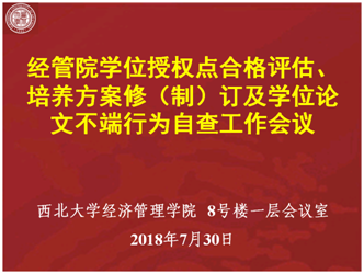 冰球突破豪华版官方网站自2014年底启动学位授权点合格评估工作以来,经管院分别于2016和2017年完成两个阶段的自我评估,随后启动持续改进计划;并于今年3月份完成6个学位点的专家进校评估。目前,本轮学位授权点合格评估工作进入最为关键的冲刺阶段,也就是在11月前完善并向教育部提交最终的学位授权点合格评估材料,冰球官网需提交理论经济学一级博士点、应用经济学一级博士点、工商管理一级硕士点和工商管理硕士专业学位点共4个学位授权点的合格评估材料。