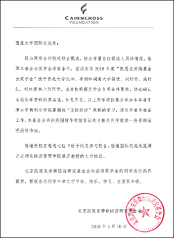 5月10日,北京凯恩克劳斯经济研究基金会发布录取通知,授予冰球官网2017级西方经济学专业硕士研究生李俏和2016级财政学本科生张帅“凯恩克劳斯基金会奖学金”,他们将参加本年度牛津大学奥利尔学院暑期班“国际经济”课程的学习。