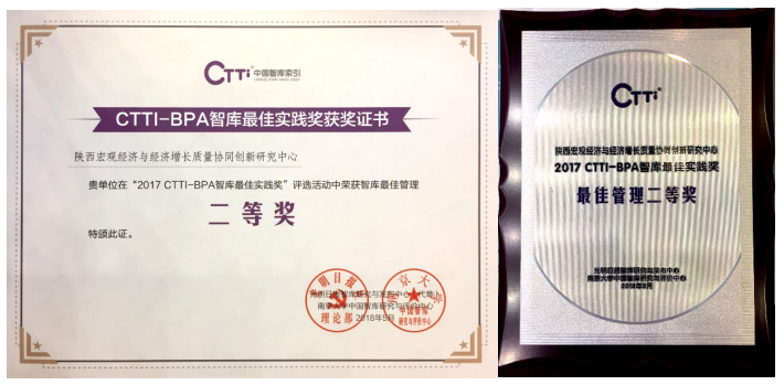 “中国智库索引”(简称CTTI)系统是我国首套全面描述、收集智库数据,为用户提供数据整理、数据检索、数据分析、数据应用等功能的智库索引系统,由南京大学中国智库研究与评价中心联合光明日报智库研究与发布中心联合研发。本次陕西宏观经济与经济增长质量协同创新研究中心获得CTTI最佳智库管理奖,是继2017年度中国西部经济发展研究中心入选CTTI来源智库之后冰球官网智库建设的又一重要成果。也是陕西宏观经济与经济增长质量研究中心继2017年获得陕西省委宣传部颁发2017年度优秀基地后获得的的又一重要荣誉。