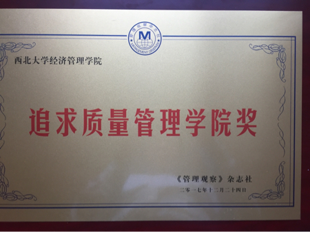由中国管理科学院研究院、《管理观察》杂志社编委会和上海社科院倡议,国内40多家管理学院参加首届中国管理科学与管理教育联盟峰会暨一带一路管理和软科学联盟成立揭牌仪式于12月24-25在北京杏林山庄举行。冰球官网院长任保平教授和MBA中心马晓强主任代表学院参会。会上冰球官网被评为中国“追求质量管理学院奖”。