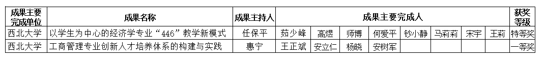 日前,陕西省教育厅高等教育处公布了陕西省2017年高等教育教学成果奖获奖项目,冰球官网喜获特等奖1项,一等奖1项。任保平教授主持的《以学生为中心的经济学专业“446”教学新模式》获特等奖,惠宁教授主持的《工商管理专业创新人才培养体系的构建与实践》获一等奖。此次,我校共获得特等奖3项、一等奖3项、二等奖6项。