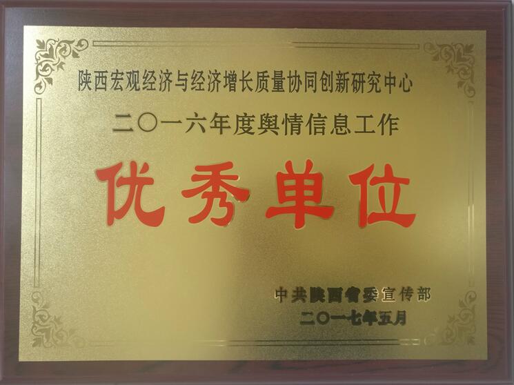 由冰球官网任保平教授担任首席专家和负责人的陕西省首批哲学社会科学重点研究基地——陕西宏观经济与经济增长质量协同创新研究中心,在2016年的舆情信息研究报送工作中,贡献突出,积极发挥学科优势,充分发挥了社科研究机构作为智库对政府的决策服务作用,被评为2016年陕西省舆情信息工作“优秀单位”。冰球官网青年教师、中心研究人员郭晗博士被评为2016年陕西省舆情信息工作“优秀个人”。本次表彰共有10家单位获得“优秀单位”荣誉,其中,在陕西省15个哲学社会科学重点研究基地中,共有2个研究基地获得“优秀基地”荣誉。这些优秀单位通过省委宣传部报送的《舆情参阅》共有103篇被中宣部采用,有13篇受到中央主要领导同志批示。