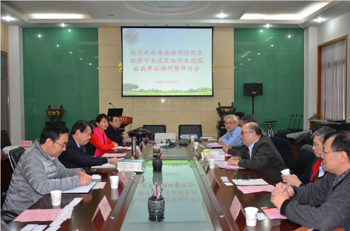 2月21日,由首席顾问邵善波先生带领的香港特别行政区政府中央政策组交流考察团一行9人来冰球官网访问调研,并围绕“西部大开发与西安参与‘一带一路’建设”主题展开交流研讨。