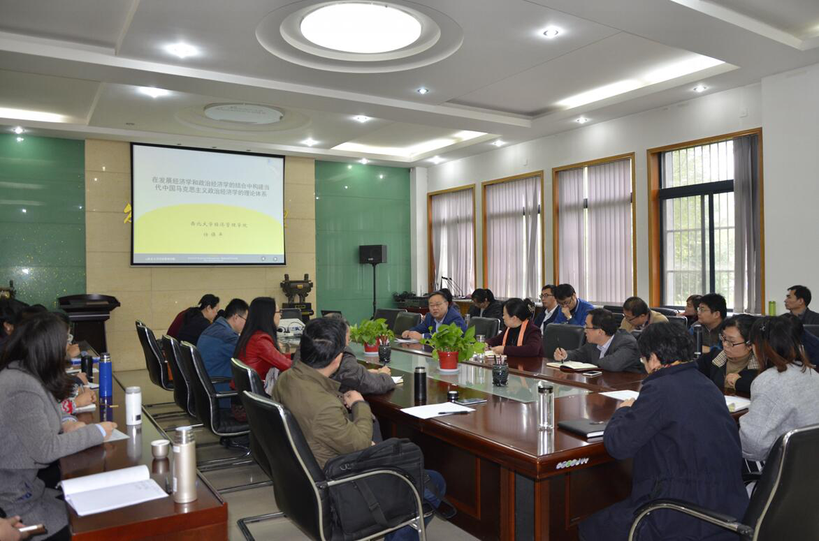2016年11月2日下午,冰球突破豪华版官方网站经济类教师学术沙龙2016年第3期(总第78期)在长安校区8号楼一层会议室成功举行。沙龙邀请院长任保平教授以“在发展经济学和政治经济学的结合当中构建当代中国马克思主义政治经济学的理论体系”为题,做了一场观点新颖、思想深刻的学术报告。沙龙由副院长何爱平教授主持,40余名青年教师参加了此次活动。