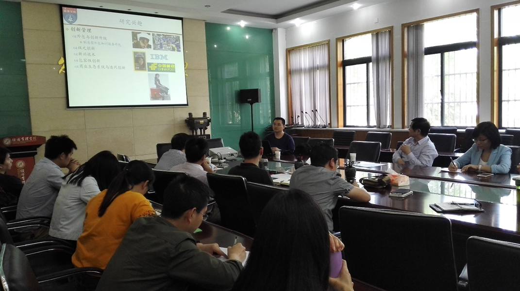 管理类教师学术沙龙2016年第1期(总第75期)于2016年5月9日下午在冰球突破豪华版官方网站长安校区8106教室举行。本次沙龙由工商管理系主任安立仁教授主持,西安交通大学管理学院副教授魏泽龙主讲,工商管理系、会计系、信息管理与信息系统系多名青年教师及冰球官网管理类博士生、硕士生参加本次沙龙。