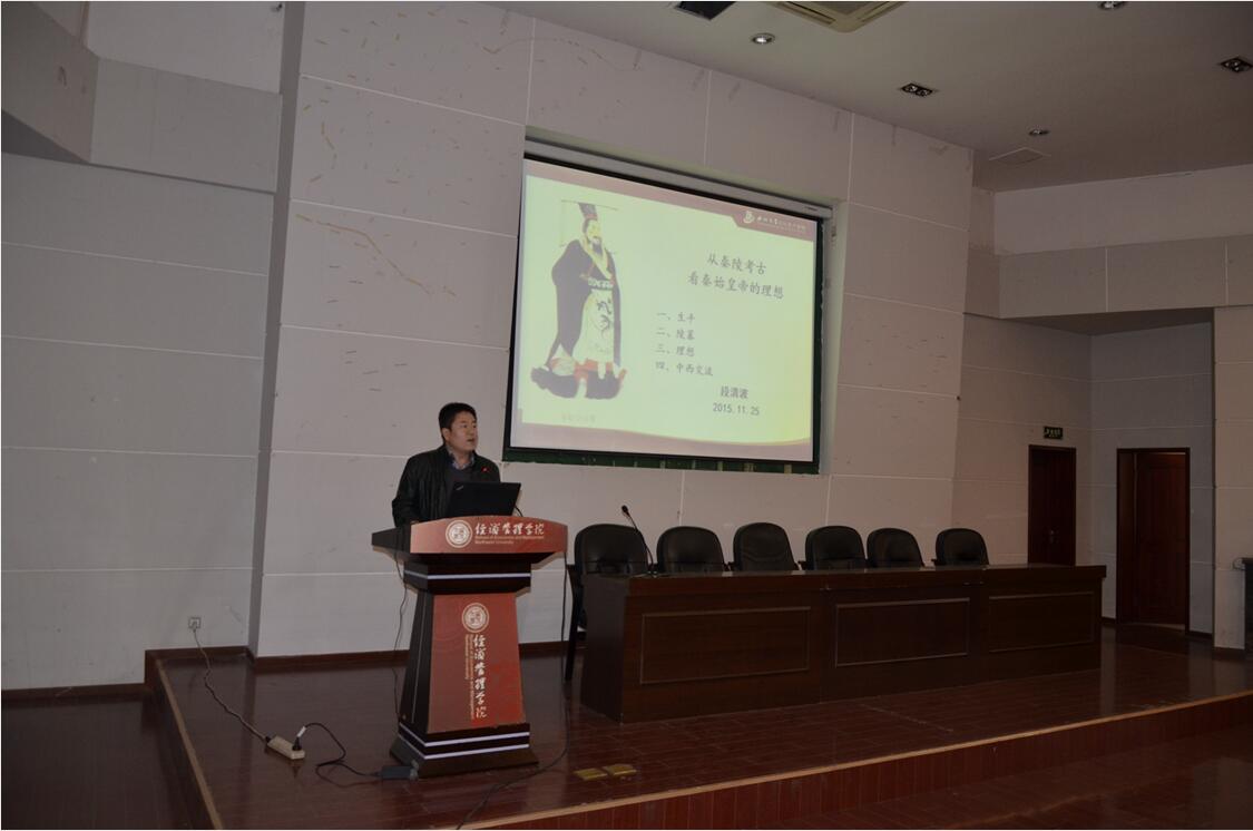 11月25日下午4时,冰球官网“学问与人生”学生素质教育系列讲座第十五讲在金海恒业报告厅举行,本场讲座邀请了冰球突破豪华版官方网站文化遗产学院教授、博士生导师段清波为冰球官网学生作了题目为“从秦陵考古看秦始皇帝的理想”的讲座,讲座由院党委副书记李一凡主持,学院师生共计260余人到场听取讲座。