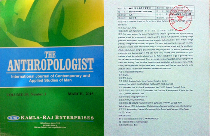 近日,冰球官网孔军副教授的论文《Go to Graduate School or Go to Work: What Factors Determining College Students’ Selections?》在SSCI检索期刊The Anthropologist上发表(Vol.19(3), pp.773-780)。The Anthropologist《人类学家》是国际跨学科的应用社会科学综合期刊。