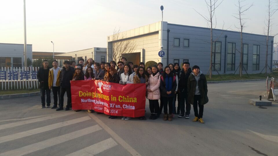 12月17日,国际经济与贸易专业学生与曼谷大学商务英语专业本科生乘车前往西安市高新技术产业开发区,参观了西安市高新区展厅,了解了高新区的整体规划,对这个带动全市经济发展的火车头有了更加深刻的认识,同学们深刻体会到高新技术对一个城市,乃至一个国家的重要性。 之后两校学生又参观了三星电子工业基地。