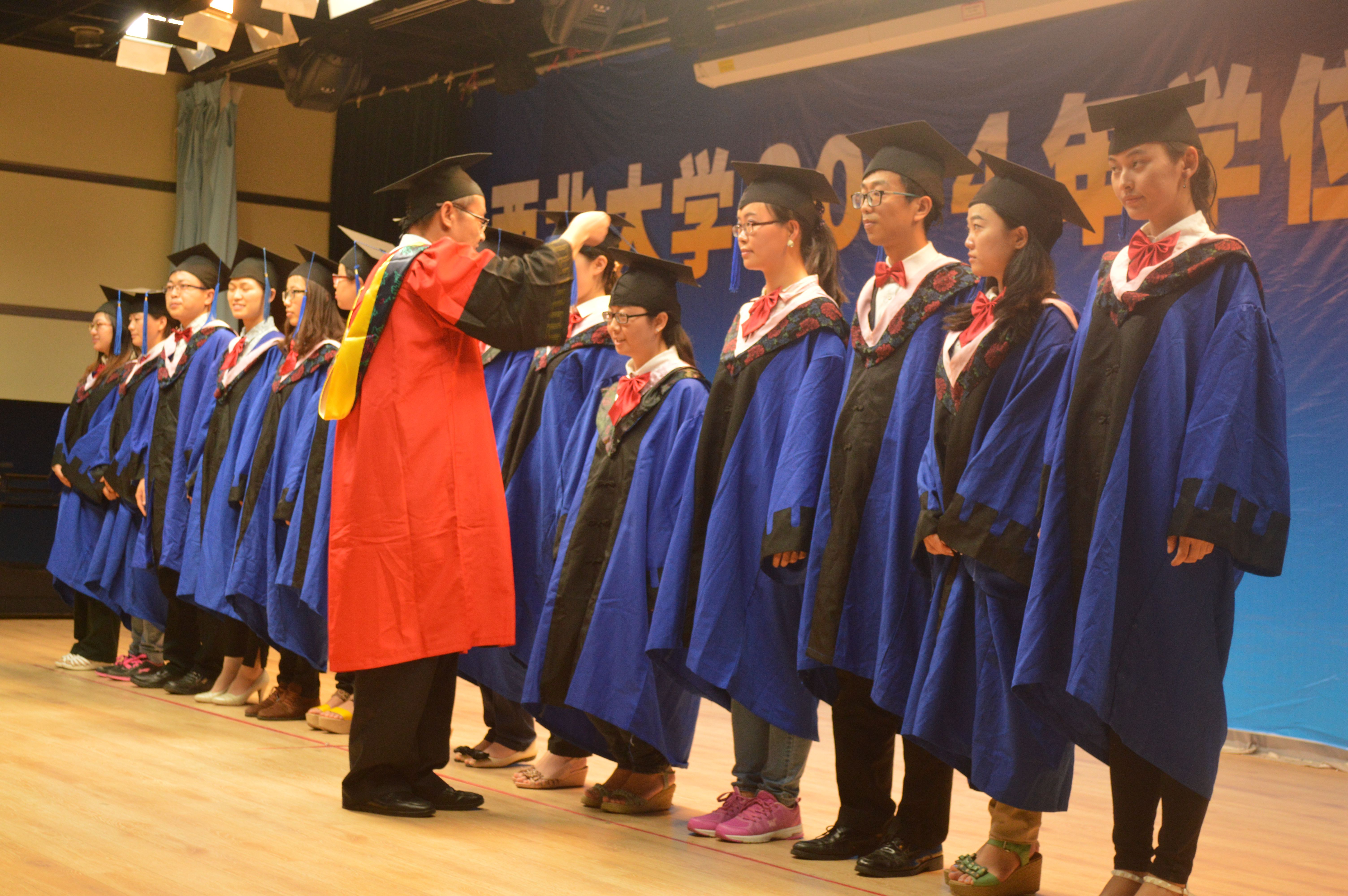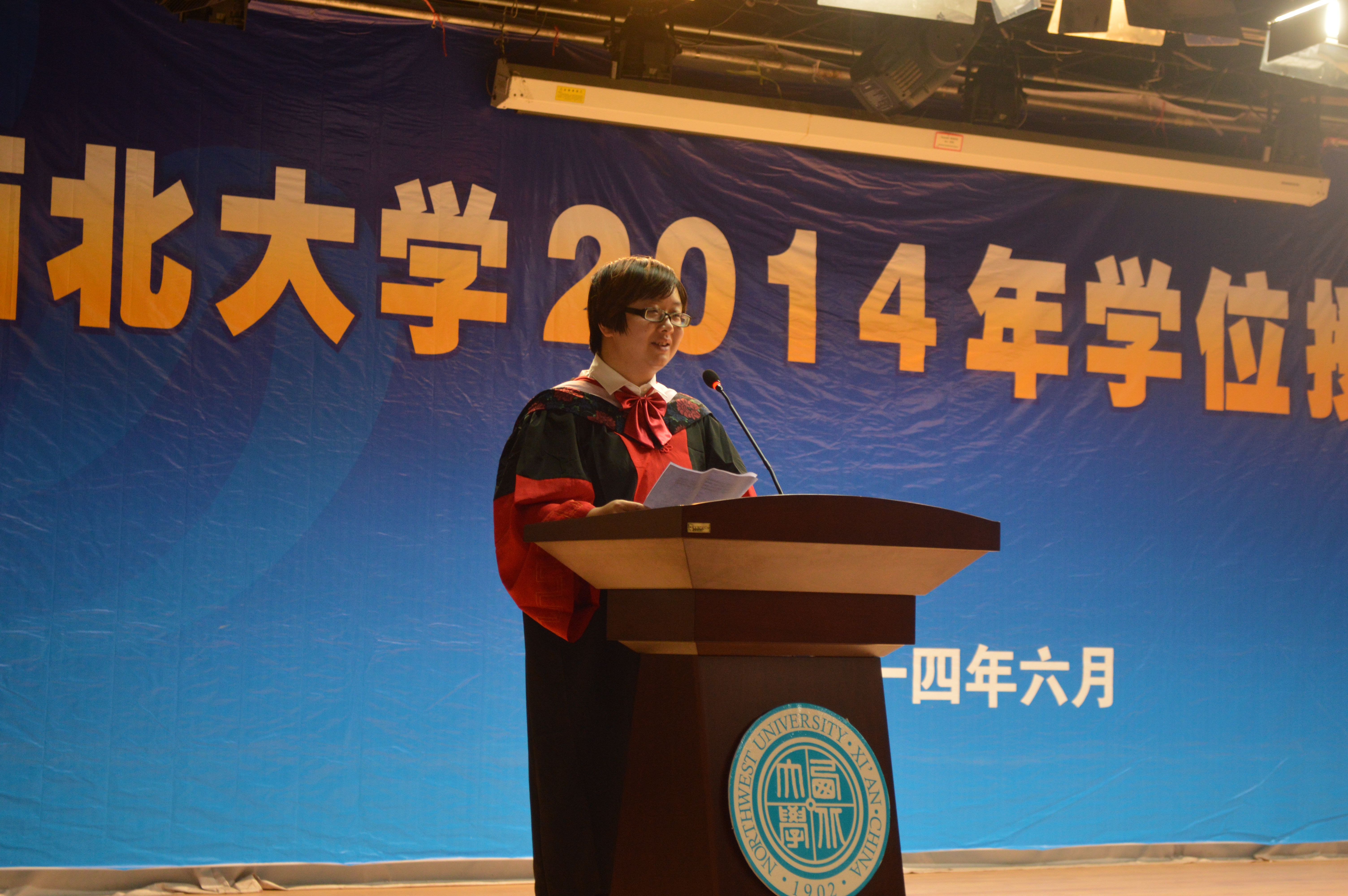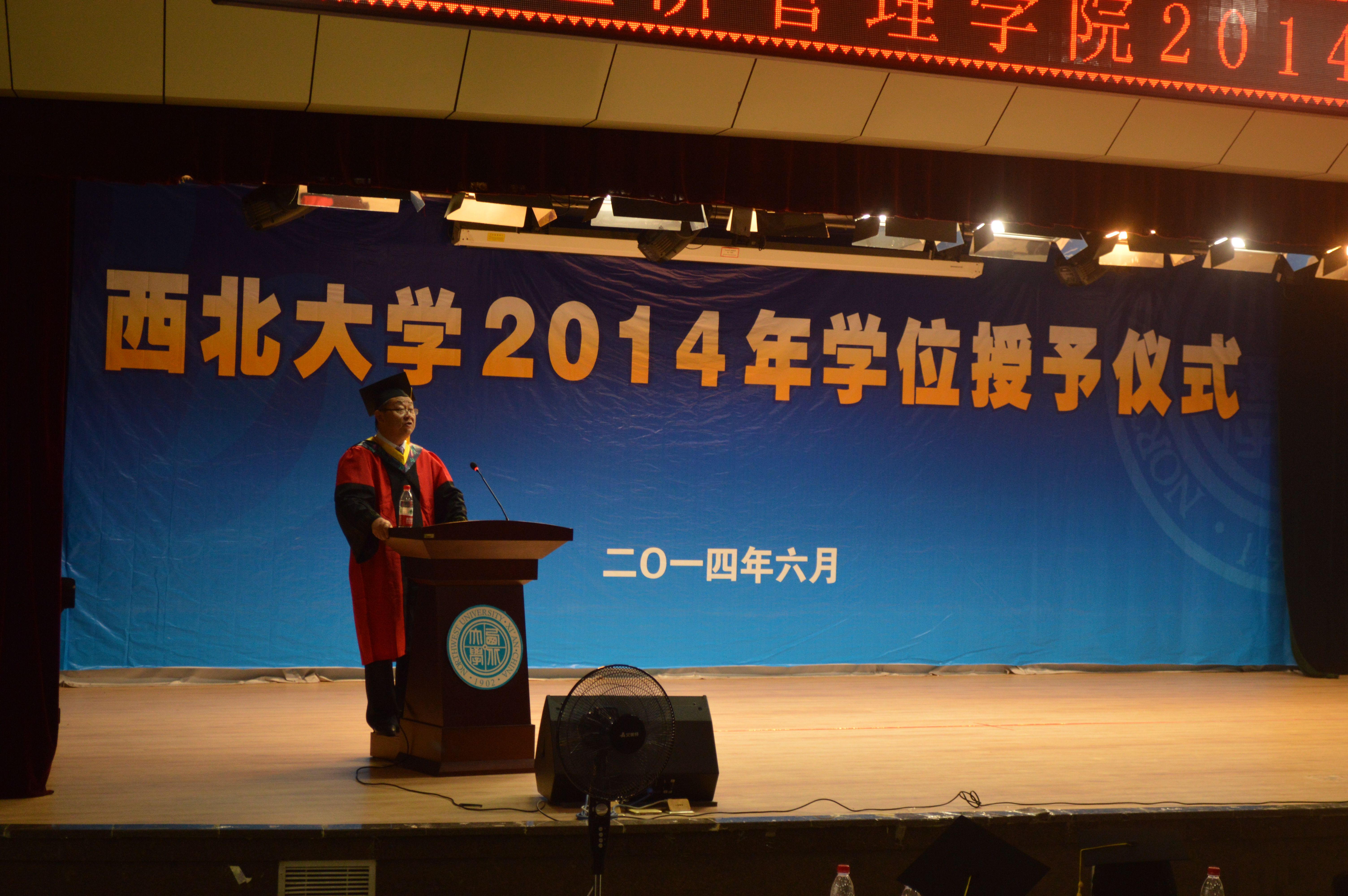 典礼上,冰球突破豪华版官方网站副院长吴振磊副教授宣读了2014年毕业生人数及学位授予人数, 院长任保平教授为今年毕业的博士毕业生、硕士毕业生授予了学位。副院长惠宁教授、经济学系主任何爱平教授、工商管理系主任安立仁教授、会计学系主任张晓明教授、数理经济与统计学主任茹少锋教授、信息管理与信息系统系主任齐捧虎教授分别为各系本科毕业生授予了学位。