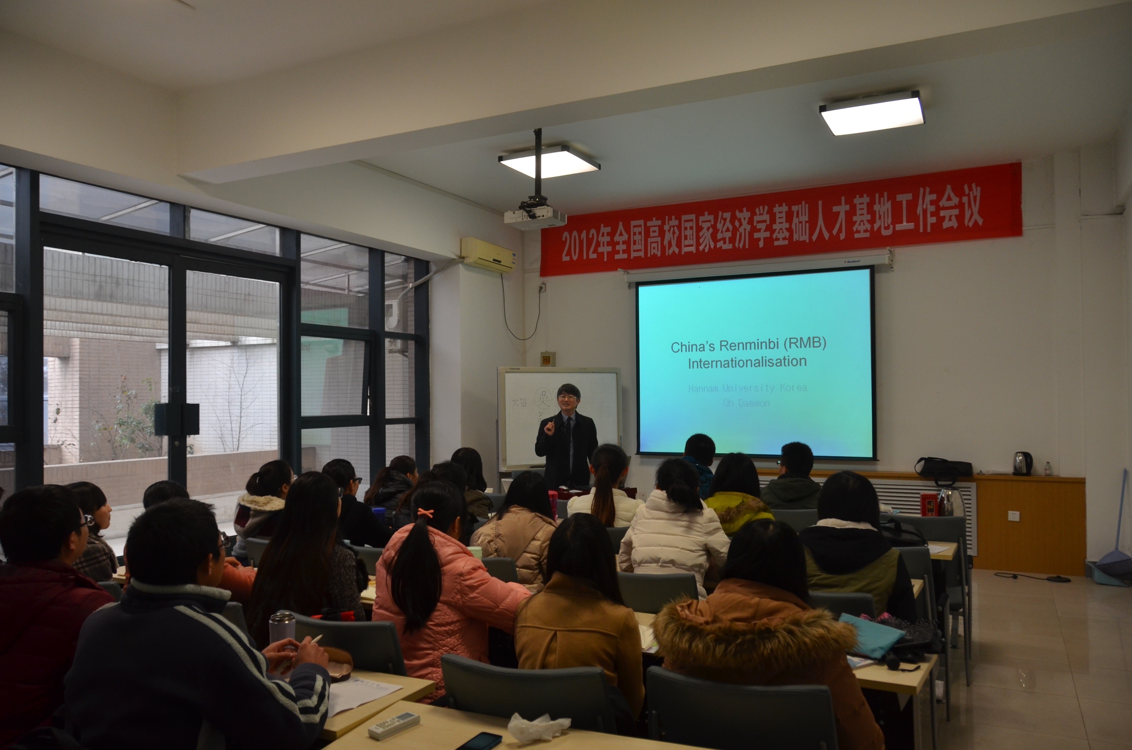 2014年2月28日,韩国韩南大学经商学院中国通商系教授吴垈原(Oh, Dae-Won)以《人民币国际化问题》为题,为冰球官网金融系研究生做了专题报告。吴教授在中国人民大学获得博士学位,是韩国研究中国人民币国际化问题的专家。