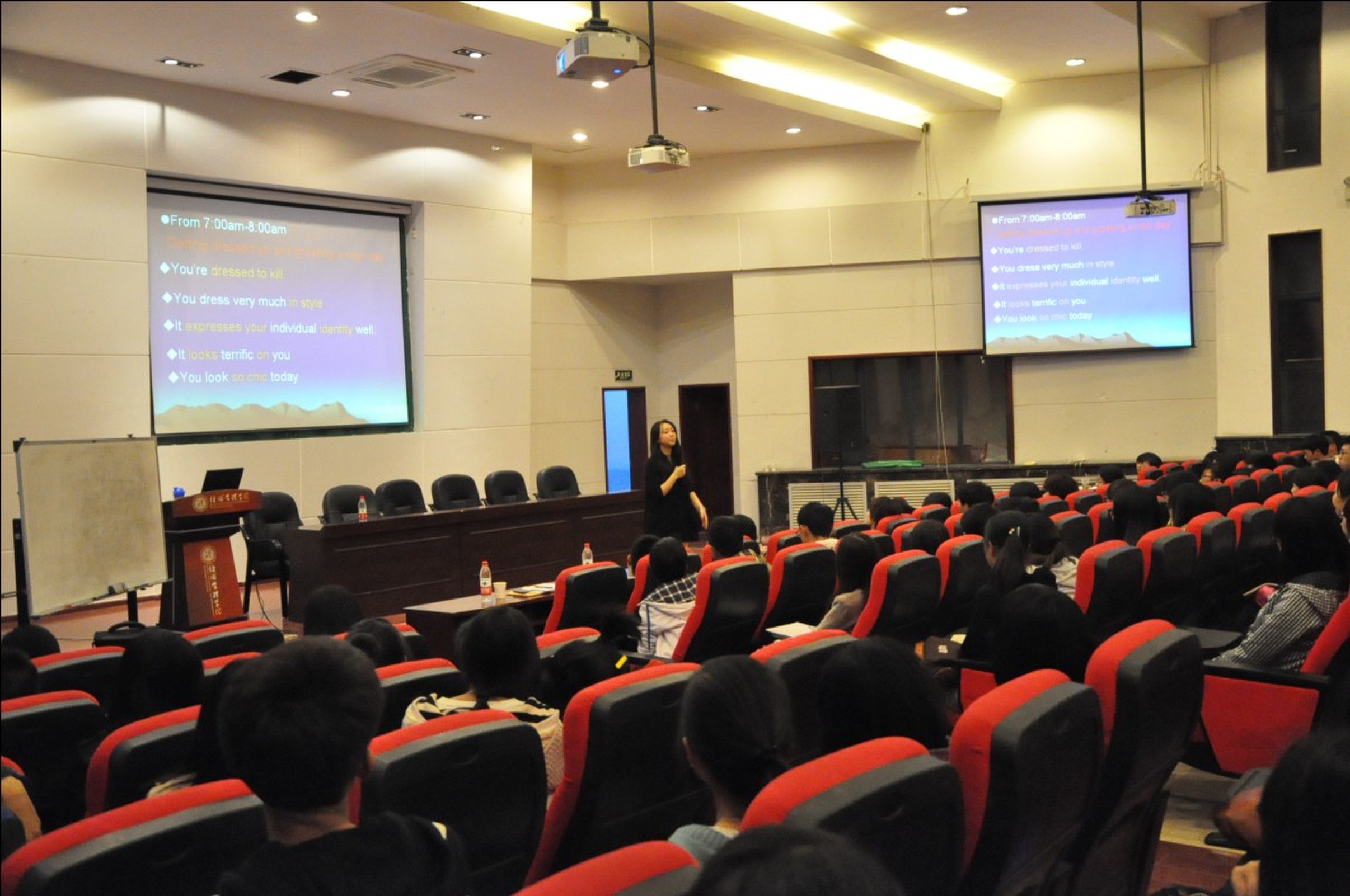 10月21日晚7点,冰球官网“学问与人生”学生素质教育系列讲座(第八讲)暨第七届研究生学术月活动专家报告会之四在长安校区金海恒业报告厅举行,陕西翻译工作者协会理事,“同声传译委员会”副主任,原西安新东方综合部主管马维娜老师应邀作了题为《Passion & Initiatives》的报告。报告会由吴振磊副院长主持,院党委副书记李一凡、部分教师、博士生、研究生和本科生300余人到现场聆听了报告。