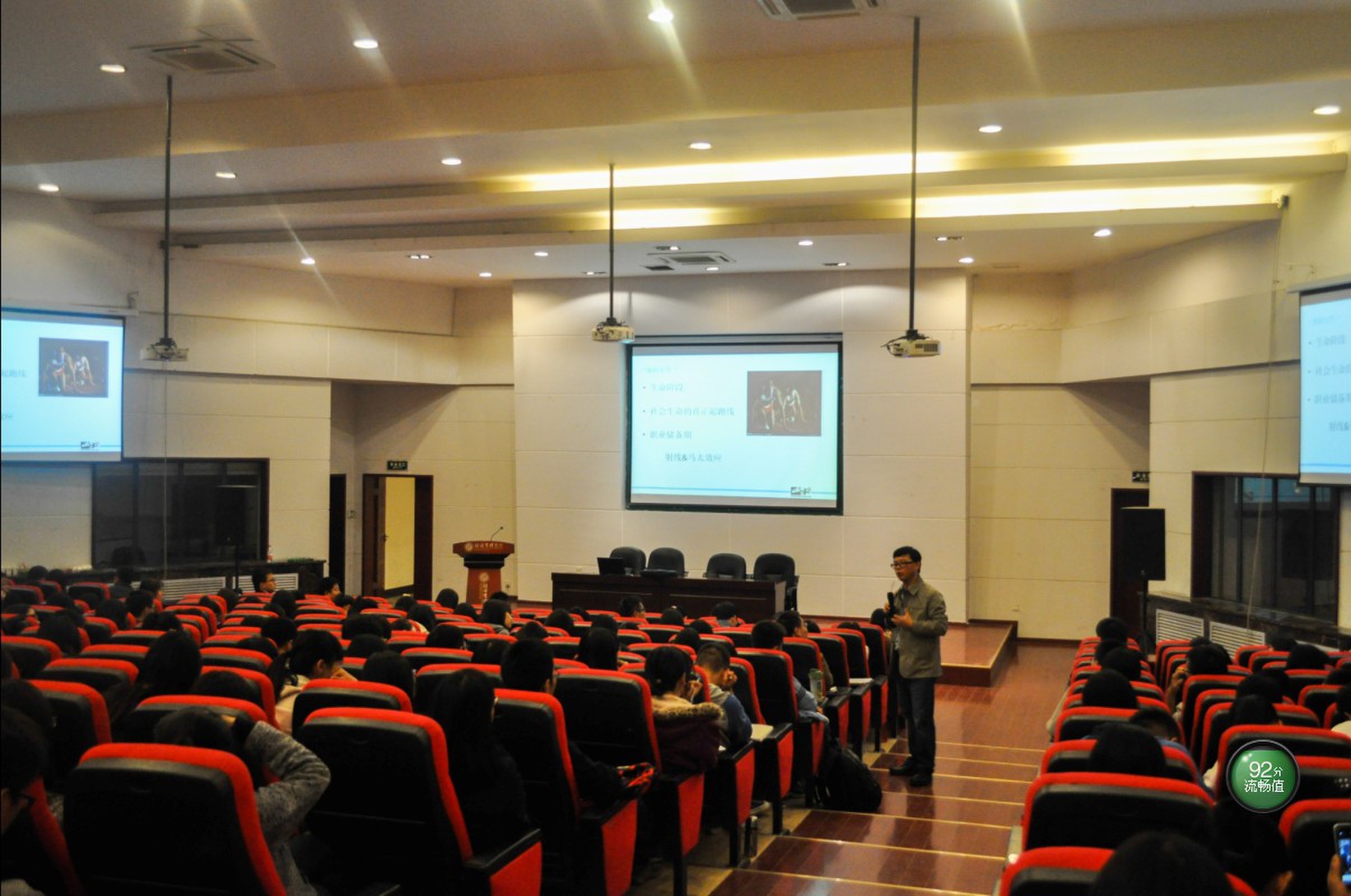 10月23日晚7点,冰球官网“学问与人生”学生素质教育系列讲座(第九讲)在长安校区金海恒业报告厅举行。西安高新区招商项目和重点企业HR服务部部长,西安高新人力资源公司经营副总经理董小泰先生应邀作了题为《职业价值与大学生活》的大学生就业创业指导报告。报告会由院党委副书记李一凡主持,200余名师生聆听了报告。