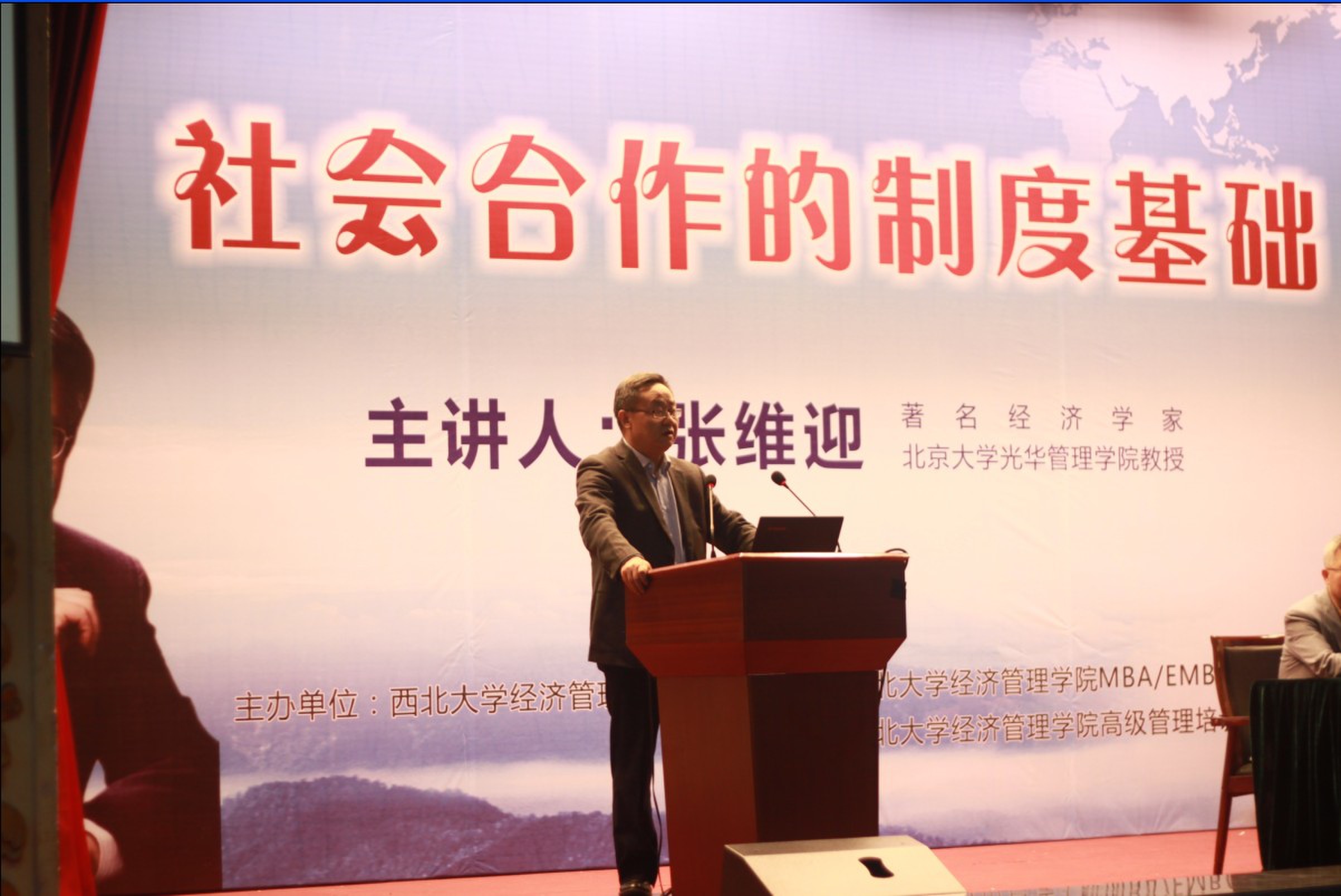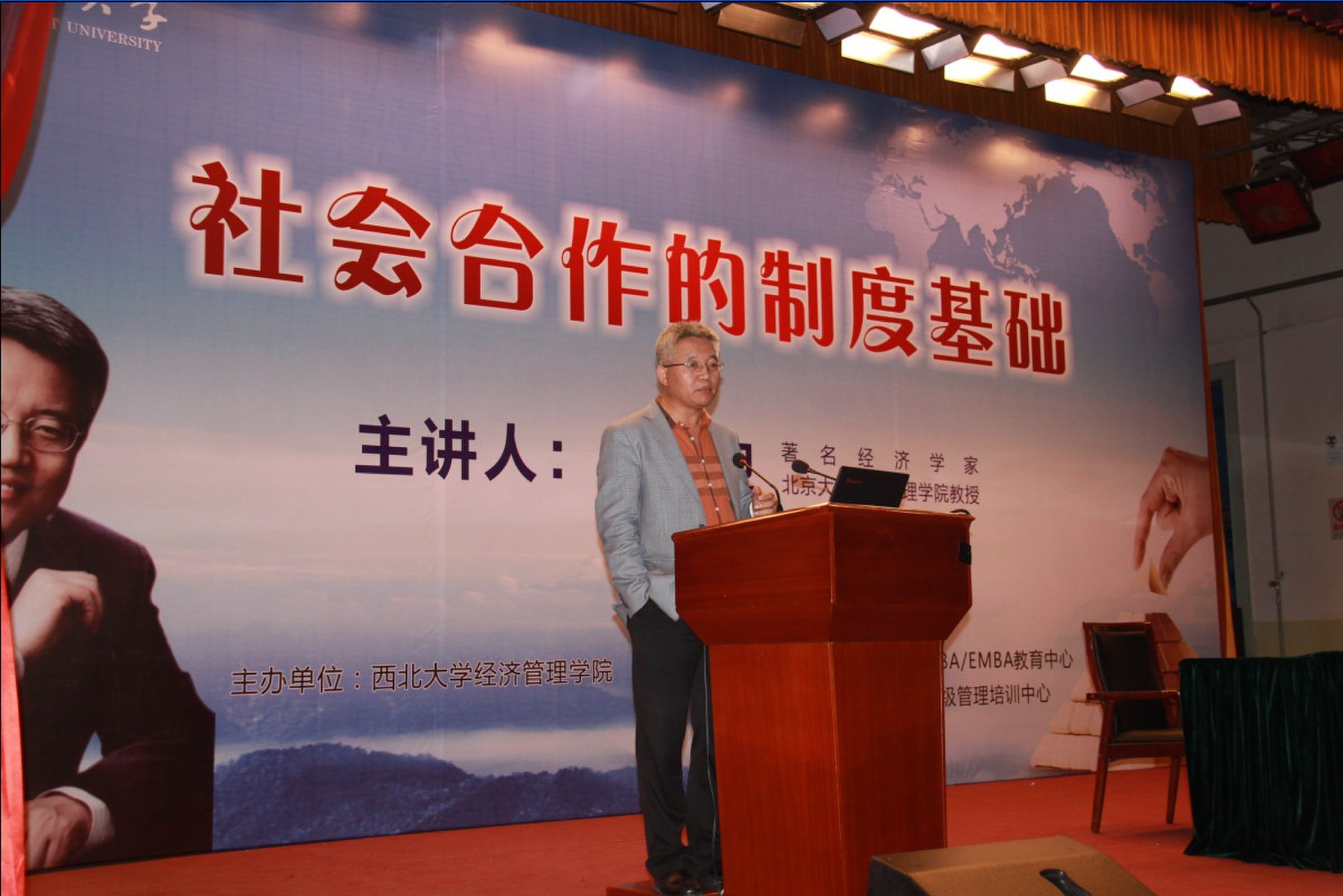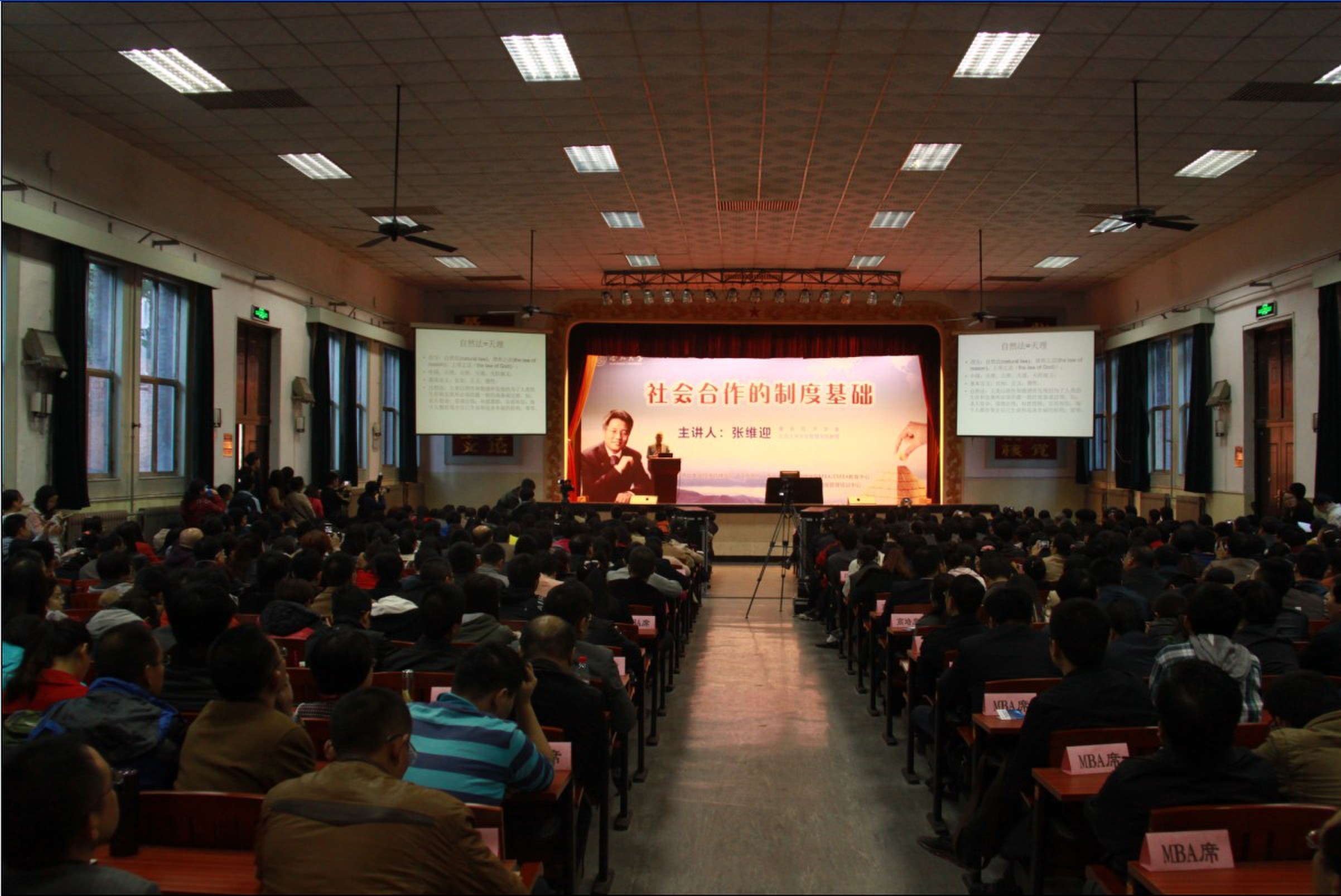 11月1日下午,经管学院“关中大讲堂”系列讲座之十四暨冰球突破豪华版官方网站第七届研究生学术月专家学术报告之八在太白校区大礼堂举行。我校杰出校友、著名经济学家、北京大学光华管理学院教授张维迎应邀作了了题为《人类合作的制度基础》的学术报告。我校部分教师、MBA和EMBA及科学学位研究生600余聆听了报告。报告会由冰球突破豪华版官方网站院长任保平教授主持。