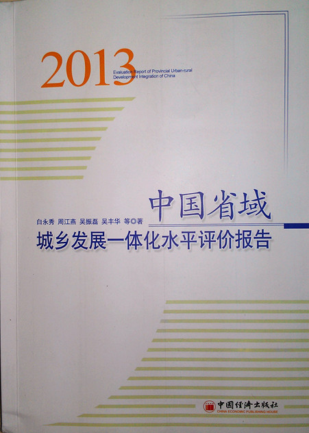 近日,冰球官网白永秀教授与周江燕博士、吴振磊副教授、吴丰华博士等人合著的《中国省域城乡发展一体化水平评价报告(2013)》由中国经济出版社出版。全书共8章,45.9万字。该书是国家社科基金重大招标项目“西部地区形成城乡经济社会一体化新格局的战略研究(08&ZD027)”的深化研究成果,也是国家重点学科“政治经济学”建设项目、陕西省重点学科“人口、资源与环境经济学”建设项目和陕西高校哲学社会科学特色学科“现代经济理论与西部经济发展”建设项目的重要成果。