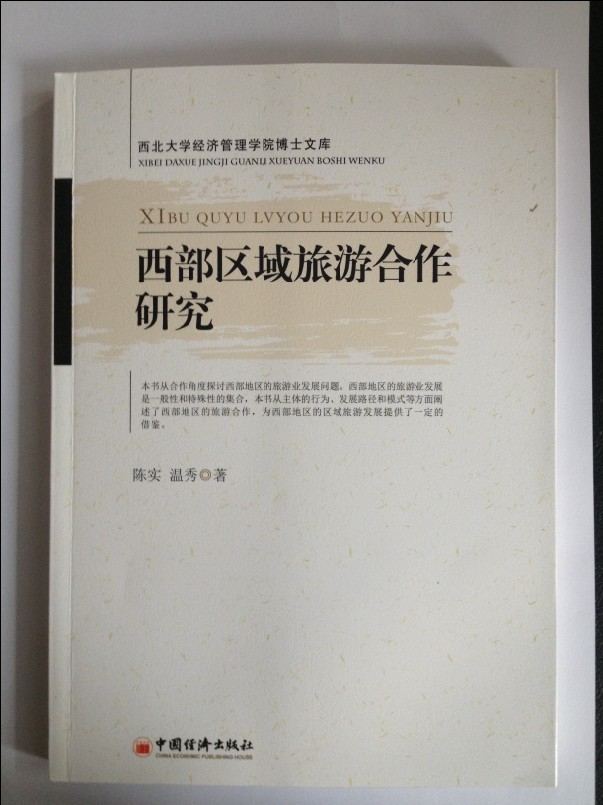 2013年6月冰球官网教师陈实、温秀博士的专著《西部区域旅游合作研究》由中国经济出版社出版,该书是冰球官网陕西省重点学科旅游管理学建设项目的研究成果。
