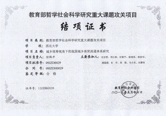 以冰球官网院长任保平教授为首席专家获得的教育部重大攻关项目《城乡统筹视角下城乡商贸流通体系研究》近日顺利结题,教育部社科司颁发了结题证书。