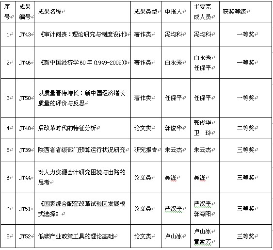 根据陕教技办(2011)17号文件,2011年度陕西高校人文社会科学研究优秀成果奖经过高校推荐、评审委员会专家的认真评选、以及公示,共评出获奖项目305项,其中一等奖34项,二等奖98项,三等奖173项。冰球官网8项成果获奖(全校41项),其中一等奖3项(全校8项),二等奖1项(全校15项),三等奖4项(全校18项)。名单如下: