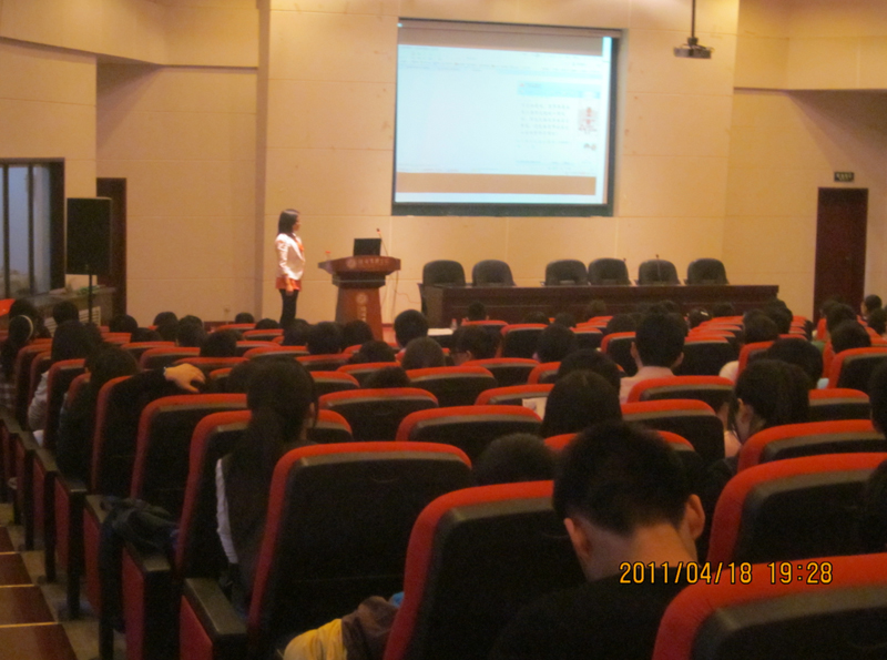 2011年4月18日晚7点,北京零点研究集团青年公益创业发展中心项目经理凌婧女士、周戴龙先生应邀在金海报告厅为冰球官网学生做了题为《黑苹果青年计划》的大学生公益创业报告会。会议由冰球官网公益创业协会会长杨飞同学主持,300余名学生参加。
