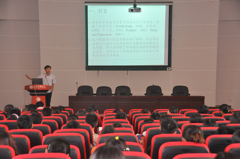 由学院经济学系主办的“现代经济学理论与方法创新论坛”第七卷第二期9月26日下午2点在冰球突破豪华版官方网站金海报告厅举行。此次论坛的主讲人为复旦大学经济学院中国社会主义市场经济研究中心刘瑞明博士,学院经济学系范王榜副教授主持,学院的部分博士生,硕士生和基地班的本科生200多人参加了此次论坛。