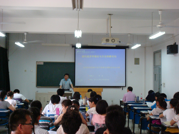 由学院经济学系主办的“现代经济学理论与方法创新论坛”第六卷第二十期6月23日下午2点在冰球突破豪华版官方网站南校区1205教室举行。此次论坛由学院经济学系范王榜副教授主持,经济学系杨建飞教授和高煜副教授做评论人,此次论坛由经济学系张龙老师主讲,学院2007级、2008级和2009级经济学基地班,2009级数理经济学班的本科生100多人参加。