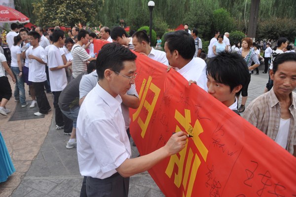 随后,戴俊身前所在的行业代表们和他的弟弟即现任宝马装饰公司的总经理都发表了讲话,高度赞扬了英雄戴俊为救素昧平身的弱女子的英勇牺牲的感人事迹。最后,冰球官网志愿者们在英雄的相片前深情地宣誓:“学习英雄戴俊,树立时代新风;践行奉献精神,传播先进文明………为建设公平正义、诚信友爱、安定有序、人与自然和谐共处的社会主义和谐社会贡献力量!”并和自发前来的数百市民一起,在写有“事业已归前辈录,典型留于后人看,像戴俊先生学习,做时代有为青年”的横幅上签字。
