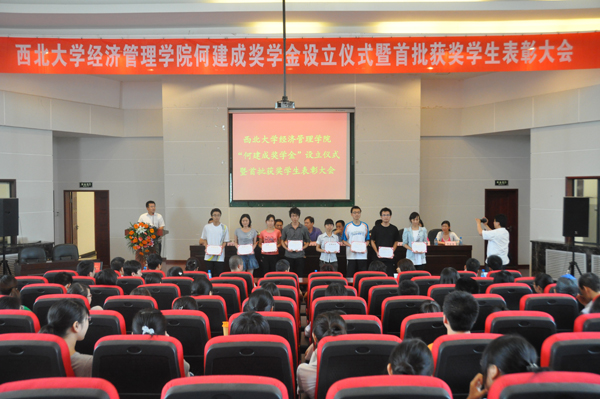 2010年6月13日,冰球官网“何建成奖学金”设立仪式暨首批获奖学生表彰大会在金海报告厅隆重举行。西安市西三爻村改造发展有限公司董事长何建成先生、学生工作部田兵权部长、张少为副部长、学院李长宏副院长、樊涛副书记出席了会议,“何建成奖学金”首批获奖学生和各年级学生代表270多人参加了大会。