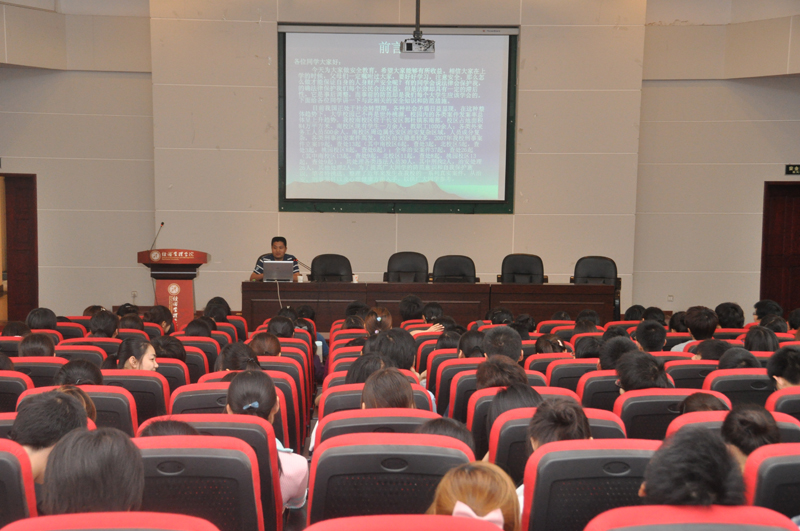 5月26日下午2点,校公安处刑侦治安科科长丁小刚老师应邀在金海报告厅为冰球官网09级本科生做了一场安全知识教育专题报告,报告会由院党委副书记樊涛老师主持,360名学生参加了报告会。