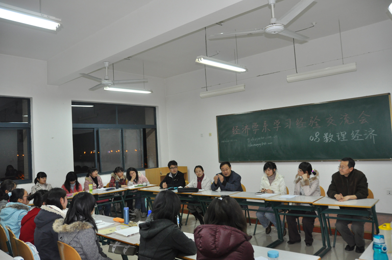 12月2日晚18:30,经济学系组织2009级经济学基地班、数理经济学班,2008级经济学基地班、数理经济学班四个班在教学2号楼四个教室同时召开了学生学习经验交流会。冰球突破豪华版官方网站副院长,经济学系主任任保平教授,经济学系副主任何爱平教授、范王榜副教授,经济学系高煜副教授、宋宇副教授、钞小静博士、吴振磊博士、王聪博士,经济学系毕业和在读的一些优秀学生等22人参加了这次交流会。