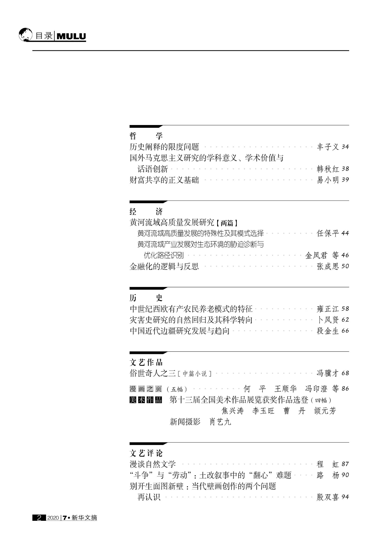 《新华文摘》2020年第7期全文转载冰球官网任保平教授文章“黄河流域高质量发展的特殊性及其模式选择”,同时作为封面文章加以推荐。该文发表于《人文杂志》2020年第1期。