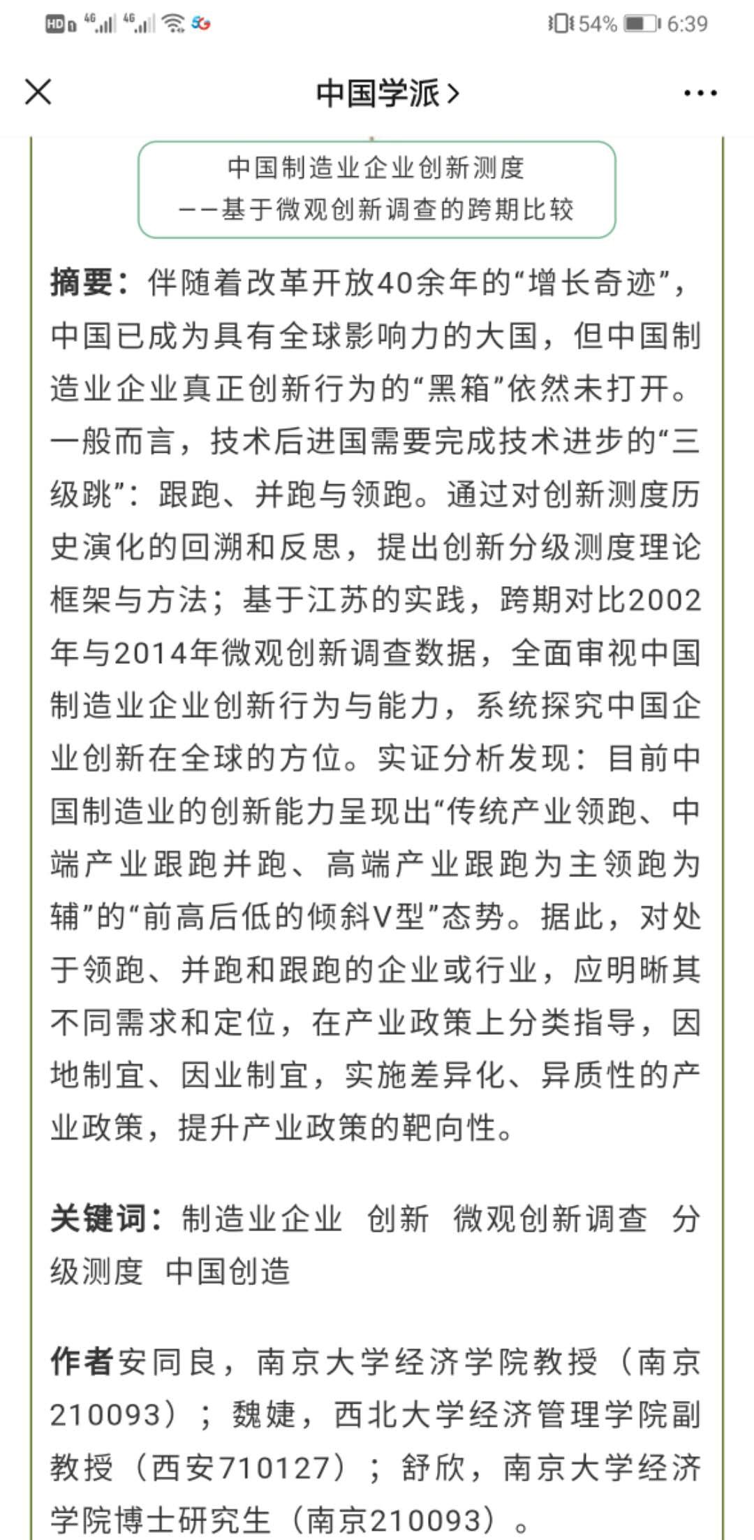 该论文回答了“与世界相比,中国制造业创新程度如何”的问题,关注了创新经济学最原始的问题——创新测度。文章基于欧盟CIS框架自主设计的符合中国实践特征的微观创新调查问卷,通过大量调查数据以及对创新测度历史演化的回溯和反思,提出了测度创新的新方法——创新分级测度。基于该方法,文章全面审视了中国制造业企业创新行为与能力,系统探究了中国企业创新在全球的方位,提出了因地制宜、因业制宜,实施差异化、异质性的产业政策分类指导意见,为提升我国产业政策的靶向性提供新的有益建议。