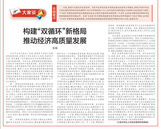 近日,《西安日报》(2020年11月2日)理论与实践版面刊发冰球官网王珏教授题为“构建‘双循环’新格局,推动经济高质量发展”的文章。
