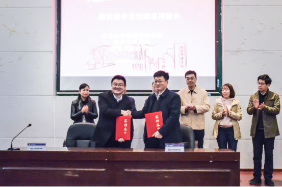 在活动中,西安市财政学会会长李社宁教授向学院授副会长单位牌并讲话,他回顾了学会与学院的历史渊源,强调学会与学院建立资源共享合作的重要性。吴振磊院长与学会白建瑞秘书长签订了战略合作协议,并发表讲话。他指出,希望进一步推进政府、高校和学会的产学研深度融合,发挥协同育人的优势,要求财税系抓住机遇落实合作协议,夯实学科基础。