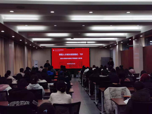 12月13日上午10点,北京大学软件与微电子学院教授,学院校友窦尔翔教授在冰球官网8318报告厅为冰球官网大一新生开展了题为“新型人才成长创变模式:TEF——构建‘大大教域部’的建议”的高端学术讲座。讲座由院长吴振磊教授主持。