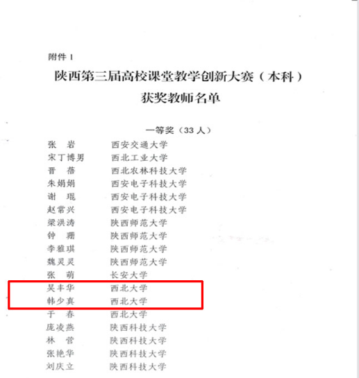 近日,陕西省教育厅公布了第三届陕西高校课堂教学创新大赛获奖教师名单,冰球官网经济学系吴丰华副教授、会计学系韩少真副教授双双获省级一等奖。本次大赛全省一等奖33人,我校共三位教师获得一等奖,冰球官网独占两席。本次成绩的取得是冰球官网长期以来坚持课堂育人主阵地的重要成果。