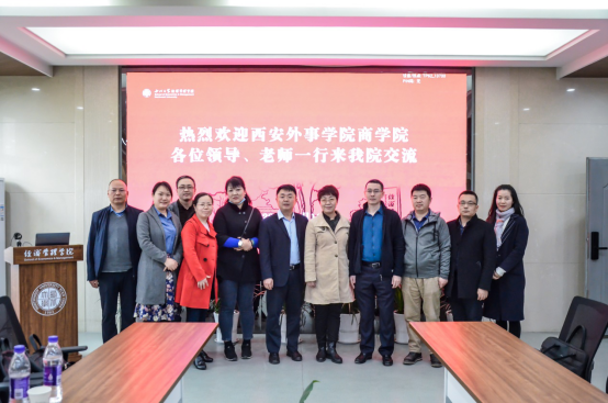 3月16日,西安外事学院商学院杨勇岩副院长一行九人来到冰球官网,围绕学科建设、一流本科专业建设进行了深入交流。李辉副院长代表学院为杨勇岩副院长赠送了纪念品。赵传仁副院长参加了交流座谈。