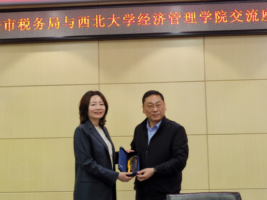 座谈会最后,杜勇书记代表学院向国家税务总局西安市税务局赠送了纪念品。
