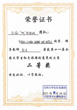 5月29日,以“青春追寻红色路 不忘初心跟党走”为主题的第十一届全国大学生红色旅游创意策划大赛落下帷幕。冰球官网旅游管理硕士宋海秋、刘明秋、张娟娟、伍暄及文学院本科生路茗洋组成的“红旅·浙里很飒”团队在大赛中表现突出,成为西北赛区文创产品类唯一一支入围决赛队伍,并荣获西北赛区特等奖、全国总决赛二等奖,指导教师余洁副教授荣获优秀指导教师奖。