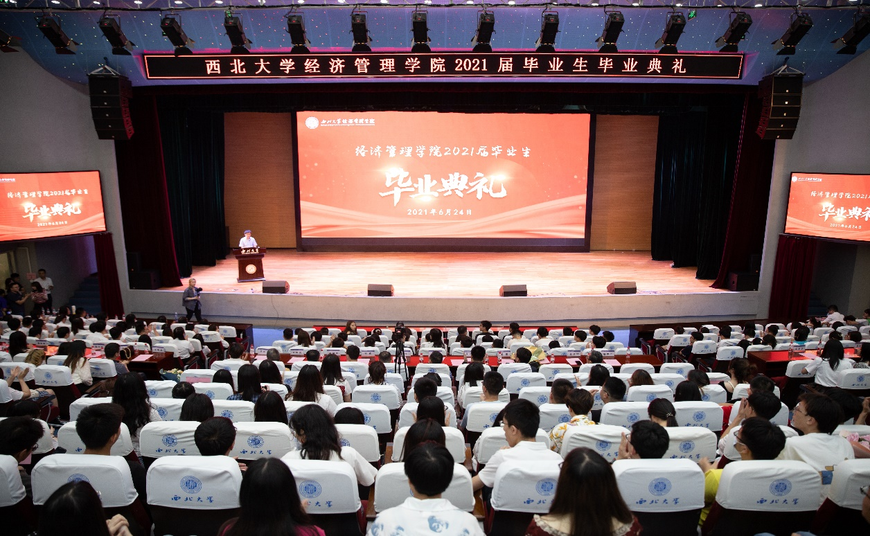 2021年6月24日,冰球突破豪华版官方网站2021届学生毕业典礼在冰球突破豪华版官方网站长安校区大学生活动中心报告厅隆重举行。招商银行西安分行零售金融事业部总经理兼零售信贷部总经理、冰球官网2006届院友但昭,冰球突破豪华版官方网站副校长、冰球突破豪华版官方网站院长吴振磊教授,党委书记杜勇与学院党政领导班子成员,各系主任、中心负责人,教师代表及2021届全体毕业生共同参加了本次典礼,典礼由学院党委副书记徐自成主持。