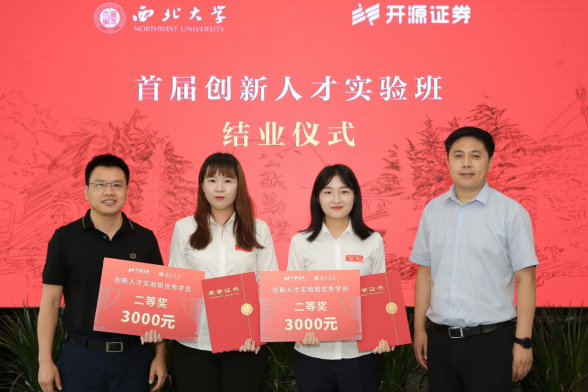 2021年6月29日,首届“冰球突破豪华版官方网站-开源证券”创新人才实验班结业仪式在冰球突破豪华版官方网站长安校区举办。我校校长郭立宏、开源证券董事长李刚共同为首届实验班学员颁发结业证书。校党委常委、副校长吴振磊、开源证券党委副书记李晓峰、总经理助理张国松,学校国内处处长崔延力、教务处副处长倪小勇分别为优秀学员颁发了奖学金证荣誉证书。开源证券人力资源部总经理李青、人力资源部总经理助理兼首届实验班班主任刘云、学院副院长李辉、金融系副主任兼首届实验班班主任王峰虎以及实验班全体学员参加了结业仪式。仪式由学院党委书记杜勇主持。