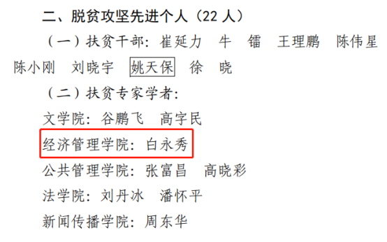 7月16日,学校颁布了《中共冰球突破豪华版官方网站委员会 冰球突破豪华版官方网站 关于表彰冰球突破豪华版官方网站脱贫攻坚先进集体和先进个人的决定》,冰球官网荣获“冰球突破豪华版官方网站脱贫攻坚先进集体”称号、冰球官网白永秀教授荣获“冰球突破豪华版官方网站脱贫攻坚先进个人”称号。