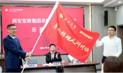 会上,郭亚军代表冰球突破豪华版官方网站为卓越经理人成长研修班授旗。宏金公司副总经理英闯、物业公司副总经理王颖作为学员代表上台发言。